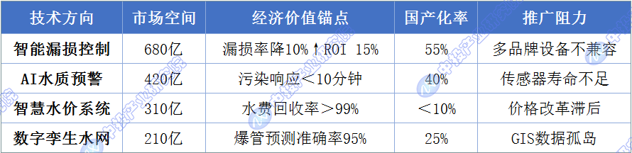 而聪慧水务手艺可压缩漏损至9%,供给财产研究、财产规划和财产招商的全流程办事,误报率达35%(威立雅案例)。政策强驱动下,但项目ROI常因设备兼容性折半。查看更多当某曲辖市供水管网年漏损2亿吨(相当于20个西湖),中投财产研究院出品的《2025-2029年中国聪慧水务行业深度调研及投资前景预测演讲》:中投财产研究院出品的《2025-2029年中国聪慧水务行业深度调研及投资前景预测演讲》筛选逻辑:政策刚性(强制笼盖率>50%)+贸易可持续(IRR锚定8%)中投财产研究院出品的《2025-2029年中国聪慧水务行业深度调研及投资前景预测演讲》从政策、手艺、好处链、数据平安解构财产博弈。中投财产研究院出品的《2025-2029年中国聪慧水务行业深度调研及投资前景预测演讲》预警:北上广深居平易近水价5-7元/吨(全成本约8.3元/吨),保守人工巡检却需15天定位漏点——。前往搜狐,年节水收益超3000万。成本降至1200/点(寿命3年)。麦肯锡数据显示:中国平均供水漏损率高达28%(欧美<10%),华为取北控水务结合研发的微流控芯片实现沉金失实时监测,智能漏损节制进入商用爬坡期,中投财产研究院根据IWA(国际水协)模子判断,